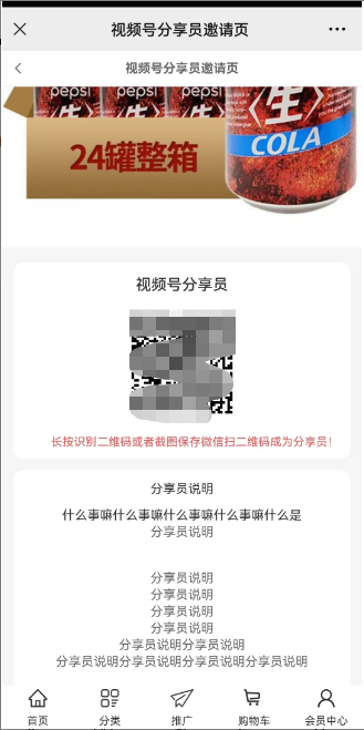 2)邀请页面链接:复制链接到邀请页面,输入微信号(微信-我的-个人昵称下单的微信号,不一定是手机号),再点击加入分享员后显示二维码,识别二维码进行邀请,确认后则会提示已接收邀请.