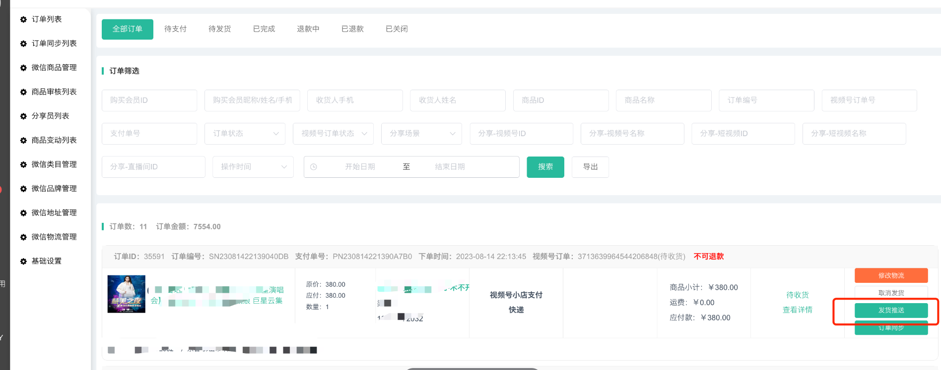 若点击同步订单没更新订单状态的话,在订单列表点击发货推送即可。