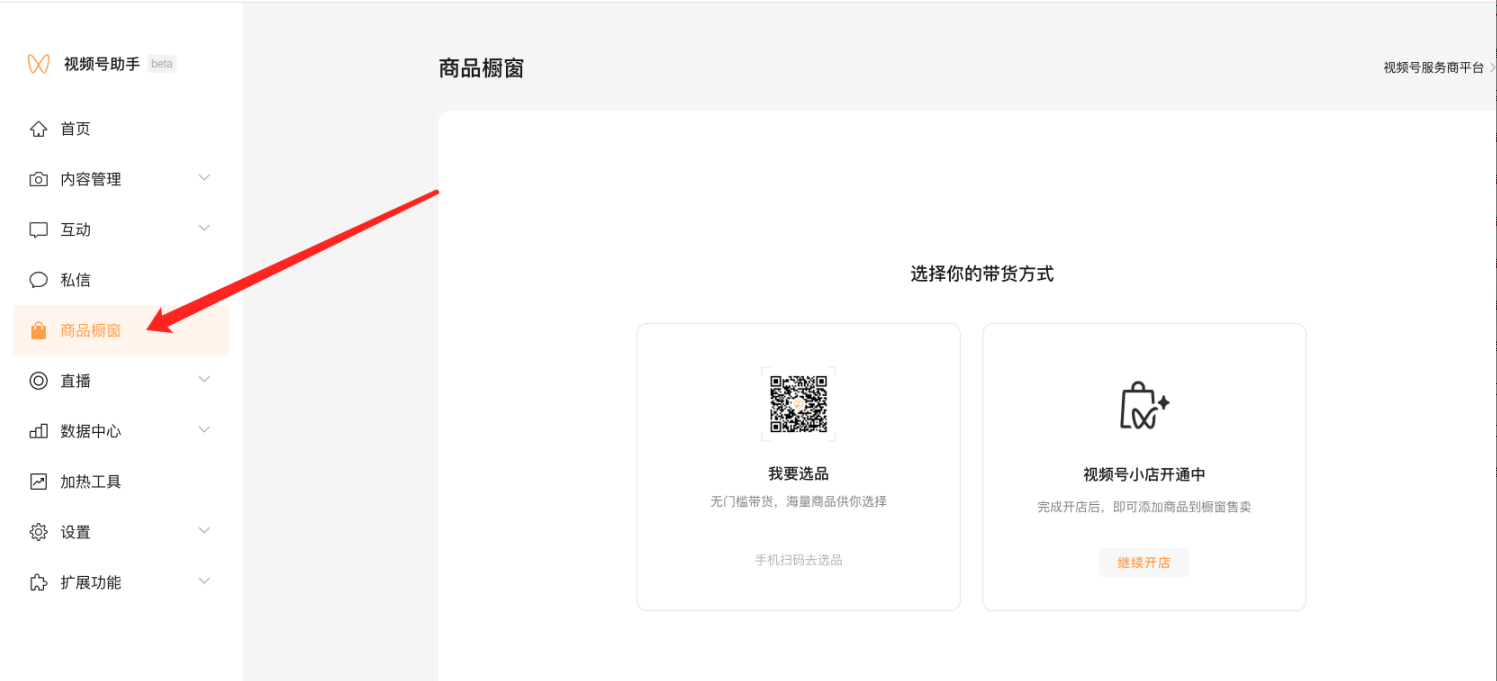 1. 只有开启视频号小店的商品才会在此处显示