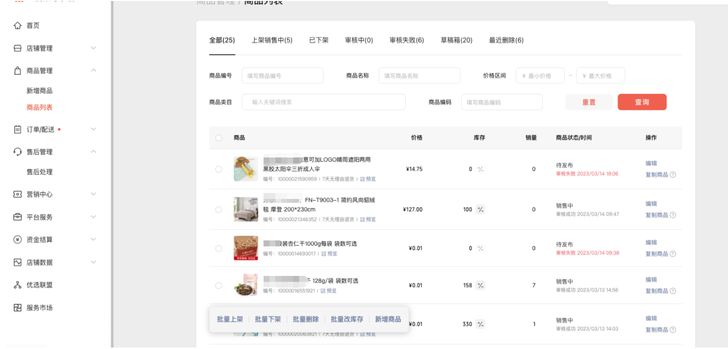 七、商品审核列表