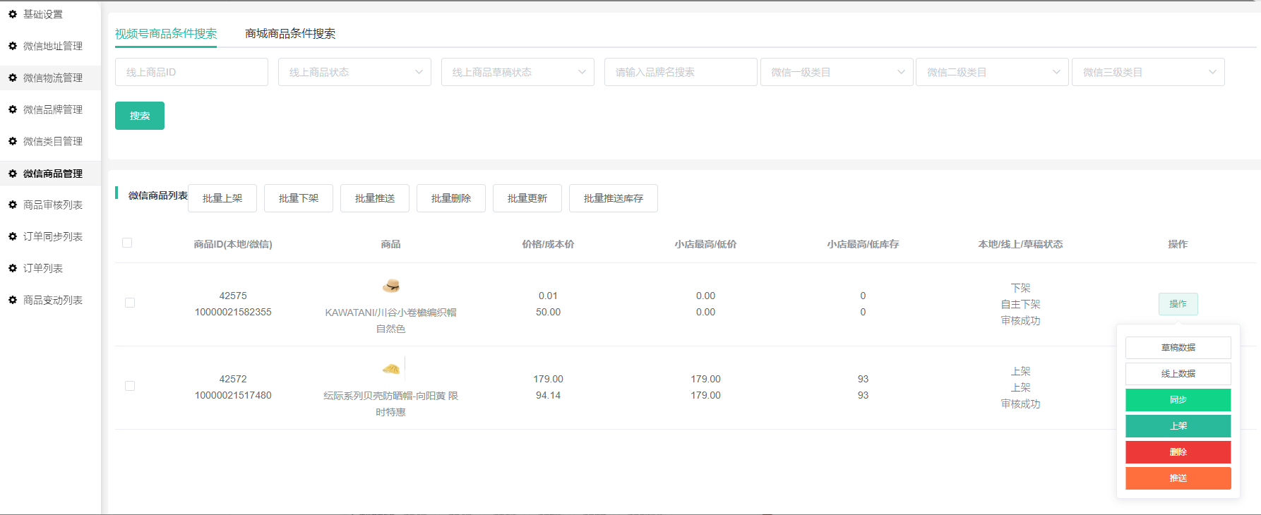 7.草稿数据和线上数据也是显示视频号小店里的商品数据