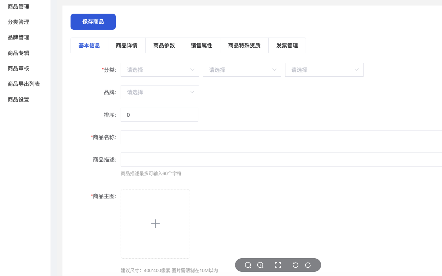 • 图片:商品主图,在前端商品列表显示的商品图片。