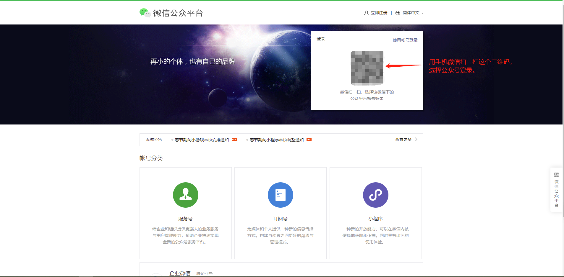 1:进入公众平台,选择公众号登录进行设置,记得提前复制保存好需要记录的信息。
