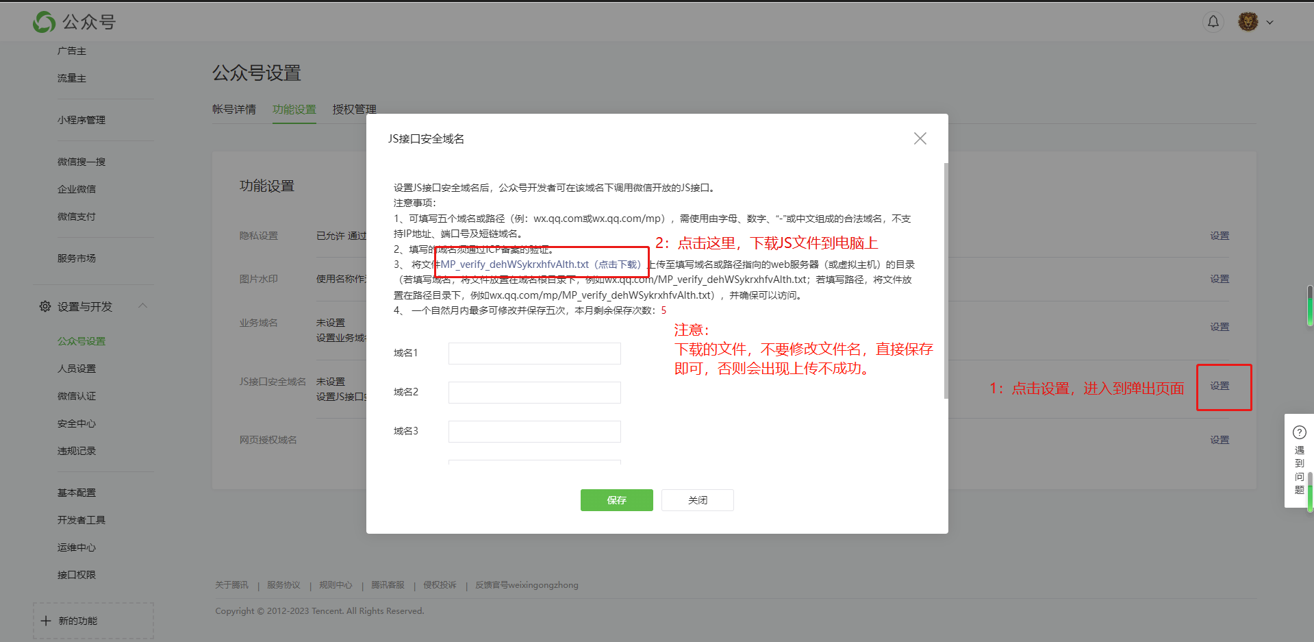 3:点击公众号设置-功能设置-下载JS文件。