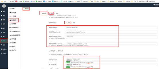 下载好的证书密钥填到后台系统-支付方式这个位置