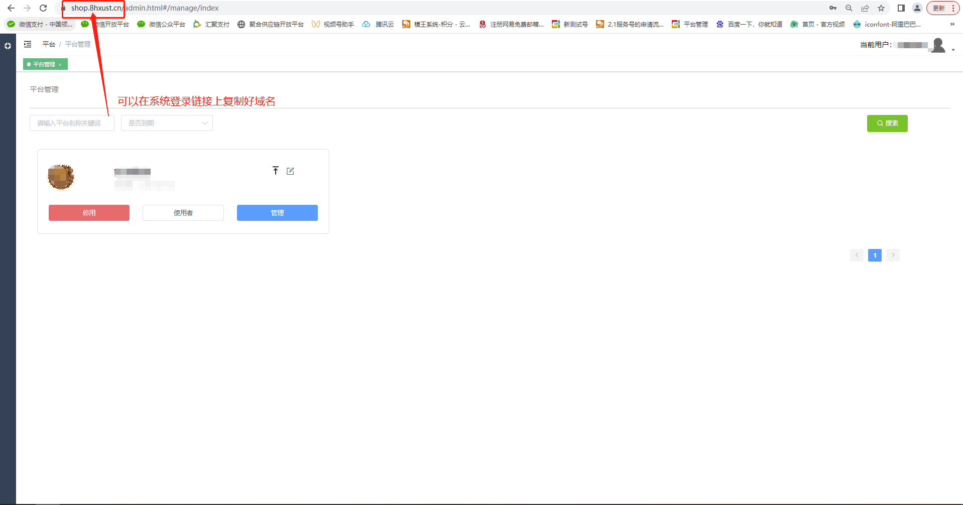 5:复制系统的域名,可以在系统登录的链接上复制。